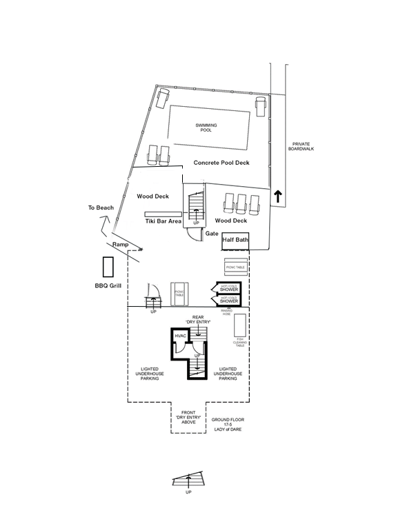 Lady of Dare's oceanfront pool has colored lights that sparkle for evening swims and is near a family picnic area with tiki bar and cabana half bath. Your VIPs will awake to majestic sunrises in this charming Lady's two oceanfront bedrooms on the lower level. Each opens to a furnished deck with panoramic ocean views as you relax in a bubbly 6-person hot tub with color changing lights. Both are king master suites. This level also includes a full hall bath, 1 king master bedroom with furnished deck, and 1 king. The kids will love the kid's bedroom with pyramid bunk (sleeps 3) and fun kids play area. Spectacular oceanfront views greet you from her 2nd level great room with a 55" LCD Smart TV with BOSE home theater system and office nook. Enjoy Outer Banks cuisine in a dining area that seats 14 next to her fully equipped, upscale kitchen for a family gourmet chef. Nearby is a screened nautical themed bar to wine, dine, and enjoy gorgeous sunsets. A king master bedroom and a convenient powder room is also on this level. Step up to her tower/game room for breathtaking ocean views and your choice of dining, watching beachgoers, TV, DVDs, movies, or playing PlayStation 3, poker, or games. Make a date with "Lady of Dare". Home is located on the extremely popular Ocean View Drive.